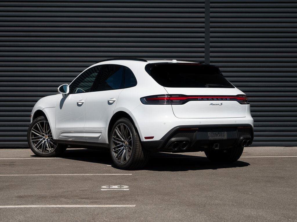 Certified. Carrara White Metallic 2023 Porsche Macan S AWD 7-Speed Porsche Doppelkupplung (PDK) V6 PDK Gear Selector in Carbon Fiber with Knob in Leather, 14-Way Power Seats, Apple CarPlay & Android Auto, BOSE Surround Sound System, Exclusive Design Fuel Cap, Heated Steering Wheel, Illuminated Bespoke Brushed Alum Door Sill Guards, Illuminated Entry, Lane Change Assist (LCA), LED Headlights w/Dynamic Light System Plus, Memory Package, Navigation System, Panoramic Roof System, Porsche Active Suspension Management System, Porsche Crest on Front Headrests, Premium Package Plus, Rear Heated Seats, Roof Rails in High Gloss Black, Side Blades in Exterior Color, Smartphone Compartment, Smoking Package, Sport Tailpipes in Black, Sunblind for Rear Side Windows, Surround View, Trailer Hitch w/o Tow Ball, Ventilated Front Seats, Wheel Center Caps w/Color Porsche Crest, Wheels: 21" 911 Turbo, Window Trim in High Gloss Black.