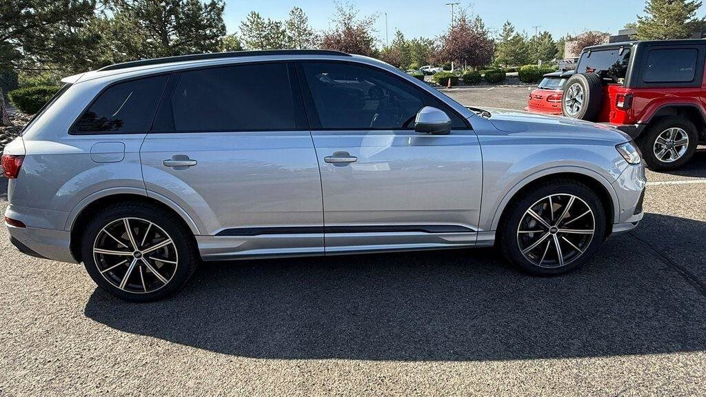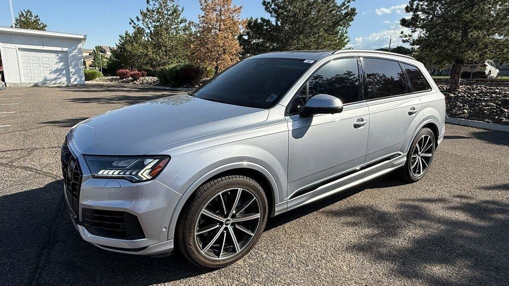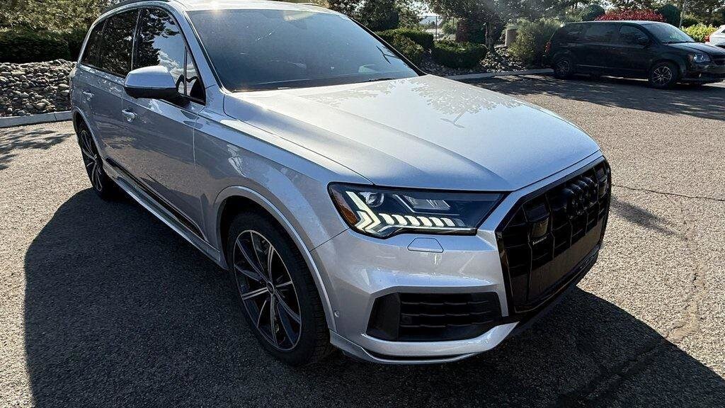 New Price! Florett Silver Metallic 2022 Audi Q7 55 Prestige quattro quattro 8-Speed Automatic with Tiptronic 3.0L TFSI Cargo Shade, 4-Zone Automatic Climate Control, Adaptive Cruise Assist w/Lane Guidance, All-Wheel Steering, Audi Beam Rings, Audi Guard Protection Kit, Audi Phone Box Credit, Audi Phone Box w/Wireless Charging, Bang & Olufsen 3D Premium Sound System, Black Audi Rings & Badges, Black Optic Package, Comfort Adaptive Air Suspension, Contour/Ambient LED Interior Lighting Package, Convenience Package, Driver & Passenger Front Seats w/Ventilation, Dual-Pane Acoustic Side Windows, Executive Package, Head-Up Display, Heated Rear Seats, Heated Steering Wheel, Illuminated Door Sills, Intersection Assist, Matrix-Design LED Headlights, Navigation system: Audi MMI Navigation plus with Touch Response, Power Soft-Closing Doors, Prestige Package, Rear Door/Side Windows & Tailgate Sunshades, Topview Camera System, Traffic Sign Recognition, Wheels: 20" 5-Spoke Turbine-Design, Wheels: 21" 10-Spoke-Star-Design Bi-Color Black.