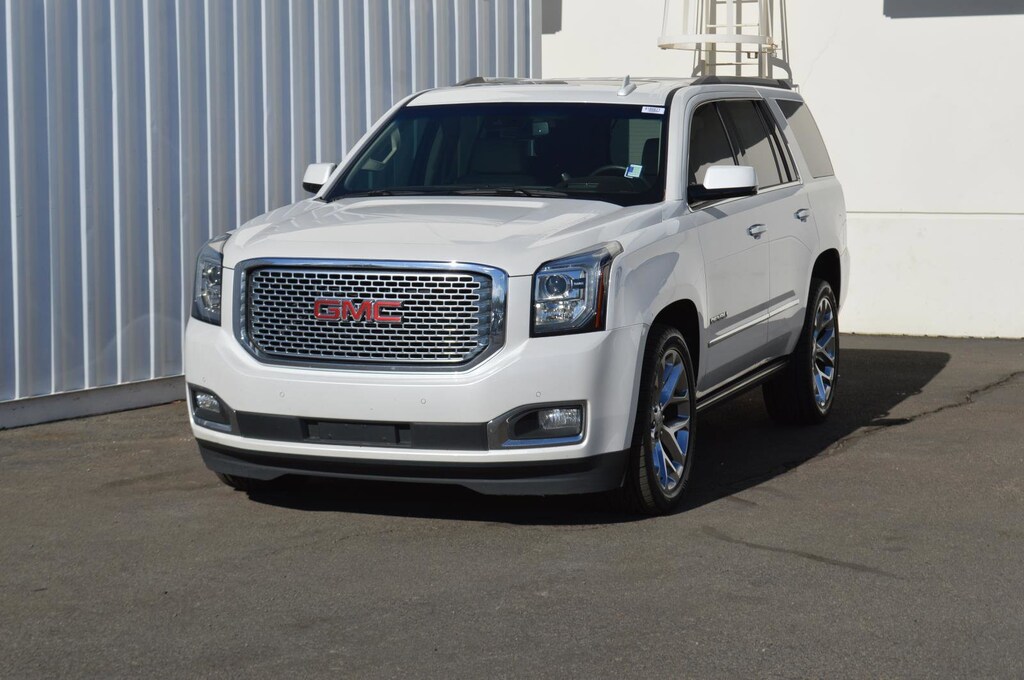 White Frost Tricoat 2016 GMC Yukon Denali 4WD 8-Speed Automatic EcoTec3 6.2L V8 4WD, 17" Disc/Disc VAC Power Brakes, 4-Wheel Disc & 4-Wheel VAC Power Antilock Brakes, 5 Auxiliary 12-volt Power Outlets, Adaptive Cruise Control w/Front Automatic Braking, Apple CarPlay Compatibility, Automatic Climate Control, Automatic Collision Preparation, Black Assist Steps w/Chrome Strip, Bose Centerpoint Premium 10-Speaker Surround Sound, Comfort Access Keyless Entry, Enhanced Driver Alert Package, Forward Collision Alert Sensor Indicator, Front Dual Zone Automatic Climate Control, Hands Free Power Liftgate, Heated Leather-Wrapped Steering Wheel, Inside Rear-View Auto-Dimming Mirror, Integrated Trailer Brake Controller, Intellibeam Automatic High Beam On/Off Headlamps, Lane Keep Assist, License Plate Front Mounting Package, Magnetic Ride Control Suspension Package, Memory Package, Navigation System, OnStar Basic Plan For 5 Years, OnStar w/4G LTE, Open Road Package, Passive Entry System, Power Release Second Row Bucket Seats, Power Tilt & Telescopic Steering Column, Power Tilt-Sliding Sunroof w/Express-Open/Close, Power-Adjustable Pedals For Accelerator & Brake, Preferred Equipment Group 5SA, Push Button Keyless Start, Rear Cross-Traffic Alert, Rear Seat Blu-Ray/DVD Entertainment System, Rear View Camera, Remote Keyless Entry, Safety Alert Driver Seat, Side Blind Zone Alert w/Lane Change Alert, SiriusXM Satellite Radio, Universal Home Remote, Wheels: 22" x 9" 6-Spk Chrome Multi-Feature Design, Wireless Charging.