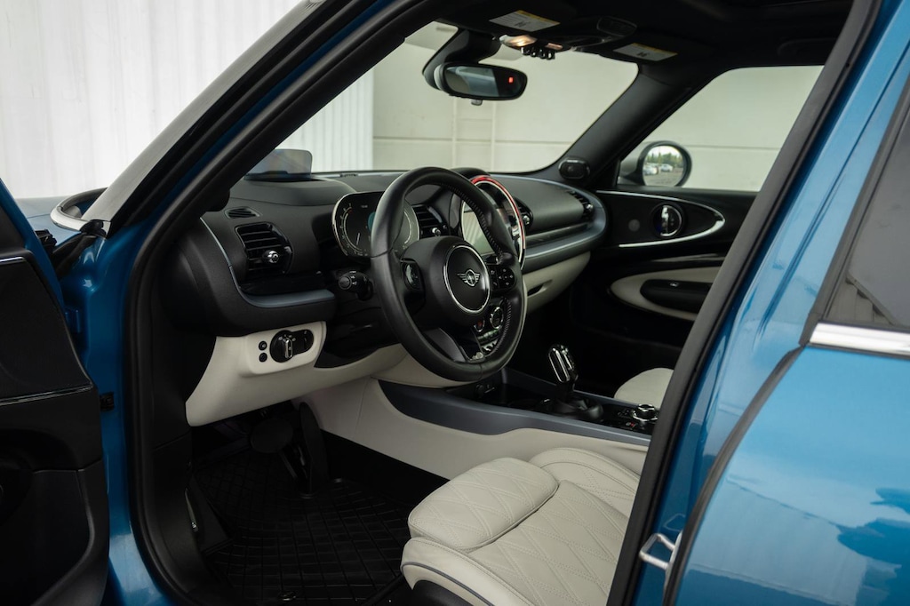 Certified. Island Blue Metallic 2023 MINI Cooper S Clubman Iconic AWD 8-Speed Automatic Sport 2.0L I4 DOHC Turbocharged 20" Inscription Alloy Wheels, 40/20/40 Split Rear Seat, ABS Brakes, Active Driving Assistant, Advanced Real-Time Traffic Information, Apple CarPlay Compatibility, Auto-Dimming Rear-View Mirror, Body Color Roof, Comfort Access Keyless Entry, Comfort Access Keyless Entry, Cross Punch Leather Upholstery, Dual Zone Auto Climate Control, Dynamic Digital Instrument Cluster, Electronic Stability Control, Front Center Armrest, Front Dual Zone Automatic Climate Control, Harmon/Kardon Premium Sound System, Heated Front Seats, Heated Front Seats, Heated Mirrors and Washer Jets, Iconic Trim 2.0, Illuminated Entry, Included Content 1, Low Tire Pressure Warning, Media Display, MINI Assist eCall, MINI Connected XL, MINI Driving Modes, MINI Excitement Package, MINI Head-Up Display, MINI Navigation, MINI TeleServices, Navigation System, Panoramic Moonroof, Parking Assistant, Piano Black Exterior Trim, Piano Black Interior Surface, Power Front Seats, Power-Folding Mirrors, Rear-View Camera, Silver Roof & Mirror Caps, SiriusXM Satellite Radio, Standard Headliner, Storage Package, Traction Control, Universal Garage-Door Opener, Wheels: 18" x 8.0" Star Spoke Silver, Wireless Charging.