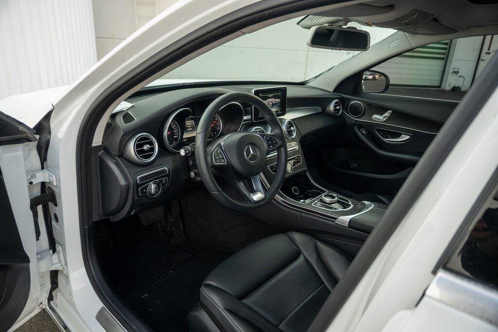 Polar White 2017 Mercedes-Benz C-Class C 300 RWD 7G-TRONIC PLUS 7-Speed Automatic 2.0L I4 Turbocharged Auto-dimming door mirrors, Bumpers: body-color, Comfort Access Keyless Entry, Heated Mirrors and Washer Jets, Power Door Mirrors, Power steering, Power windows, Premium audio system: COMAND®, Steering wheel mounted audio controls.