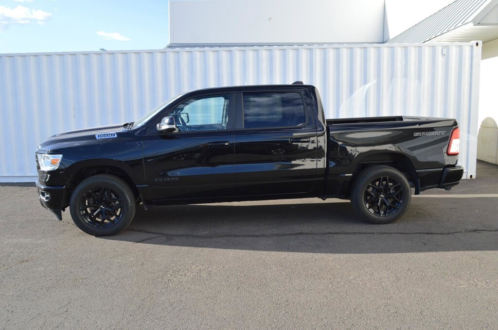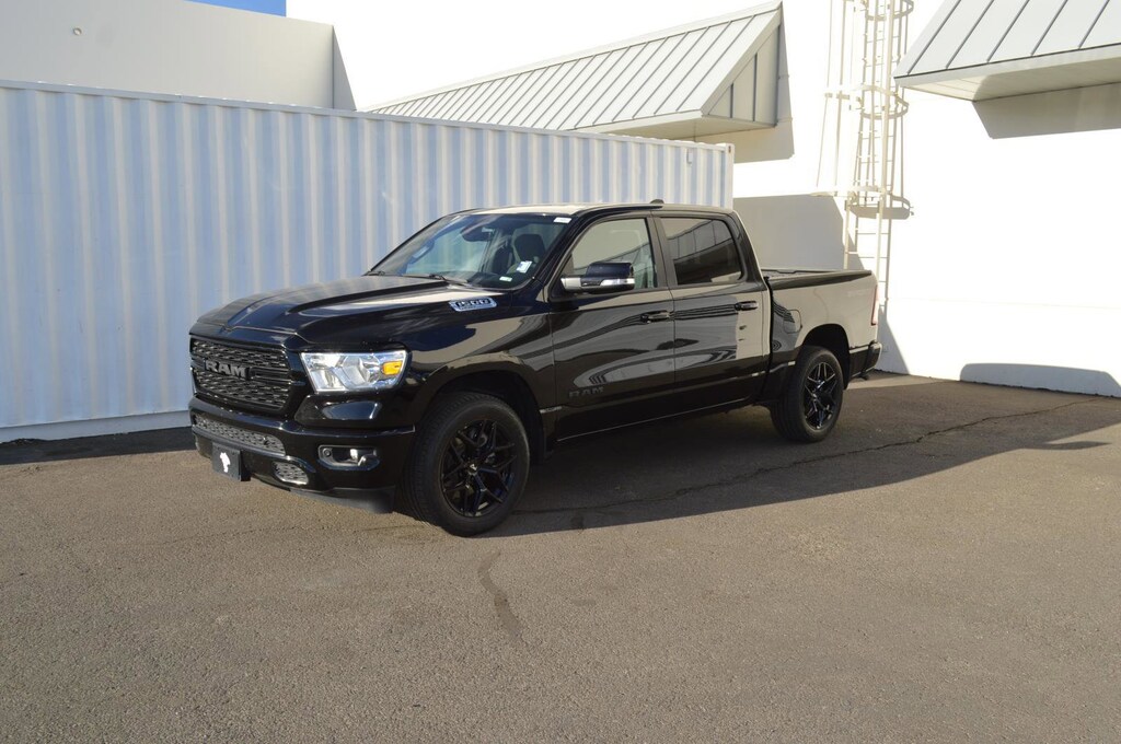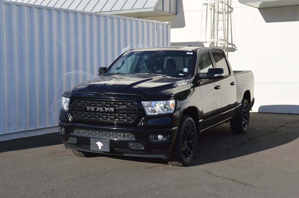 Diamond Black Crystal Pearlcoat 2022 Ram 1500 Big Horn/Lone Star 4WD 8-Speed Automatic HEMI 5.7L V8 Multi Displacement VVT 115V Auxiliary Power Outlet, 115V Auxiliary Rear Power Outlet, 2nd Row In Floor Storage Bins, 400W Inverter, 4G LTE Wi-Fi Hot Spot, 8.4" Touchscreen Display, Air Conditioning ATC w/Dual Zone Control, Apple CarPlay, Auto-Dimming Exterior Driver Mirror, Auto-Dimming Rear-View Mirror, Bed Utility Group, Big Horn Badge, Big Horn Level 2 Equipment Group, Black Exterior Mirrors, Black Premium Power Mirrors, Bluetooth Handsfree Phone & Audio, Bridgestone Brand Tires, Class IV Receiver Hitch, Cluster 7.0" TFT Color Display, Connectivity - US/Canada, Convex Wide-Angle Mirror Insert, Exterior Mirrors Courtesy Lamps, Exterior Mirrors w/Heating Element, Exterior Mirrors w/Supplemental Signals, For Details, Visit DriveUconnect.com, Global Telematics Box Module (TBM), Glove Box Lamp, Google Android Auto, GPS Antenna Input, Heated Front Seats, Heated Steering Wheel, Integrated Center Stack Radio, Media Hub w/2 Charge Only USBs, MOPAR 4 Adjustable Cargo Tie-Down Hooks, MOPAR Deployable Bed Step, MOPAR Spray In Bedliner, ParkSense Front/Rear Park Assist w/Stop, Pick-Up Box Lighting, Power 2-Way Driver Lumbar Adjust, Power 8-Way Driver Seat, Power Adjustable Pedals, Power-Folding Mirrors, Quick Order Package 27Z Big Horn, Radio: Uconnect 5 W w/8.4" Display, Rear Dome w/On/Off Switch Lamp, Rear Power Sliding Window, Rear Window Defroster, Remote Start System, Security Alarm, SiriusXM Radio Service, SiriusXM Satellite Radio, Sun Visors w/Illuminated Vanity Mirrors, Trailer Brake Control, Trailer Light Check, Trailer Reverse Steering Control, Trailer Tire Pressure Monitoring System, Trailer Tow Group, Universal Garage Door Opener, USB Host Flip, Wheels: 18" x 8" Cast-Aluminum Painted.